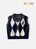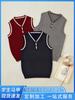 Colete de Uniforme Escolar Acolchoado para Crianças Médias e Grandes por Atacado, Tricô de Algodão de Camada Dupla, Jaqueta Estilo Preppy, Tricô Primavera e Outono 2025