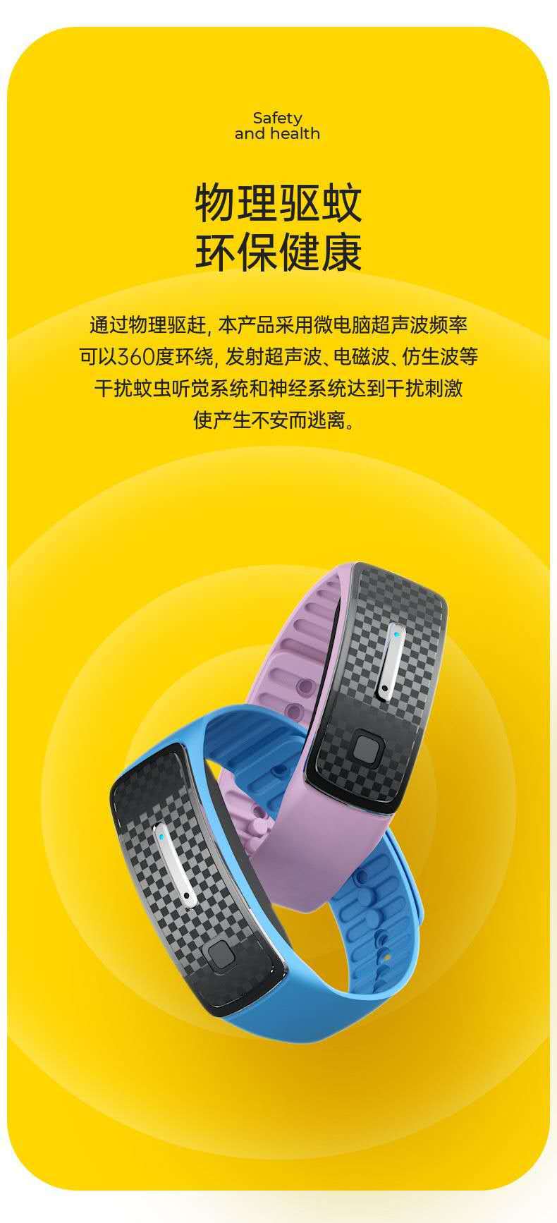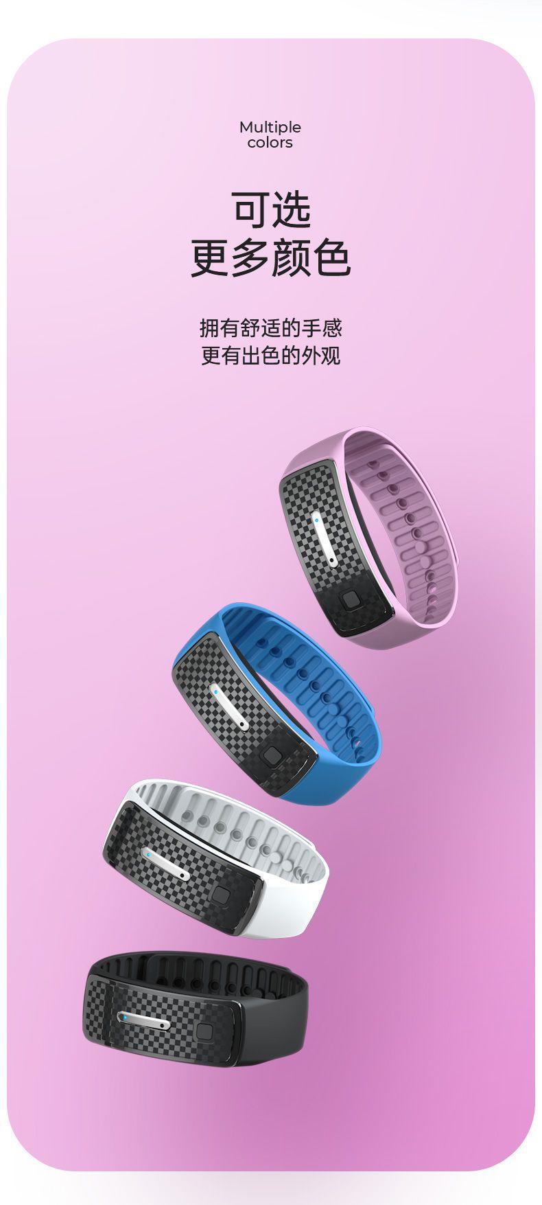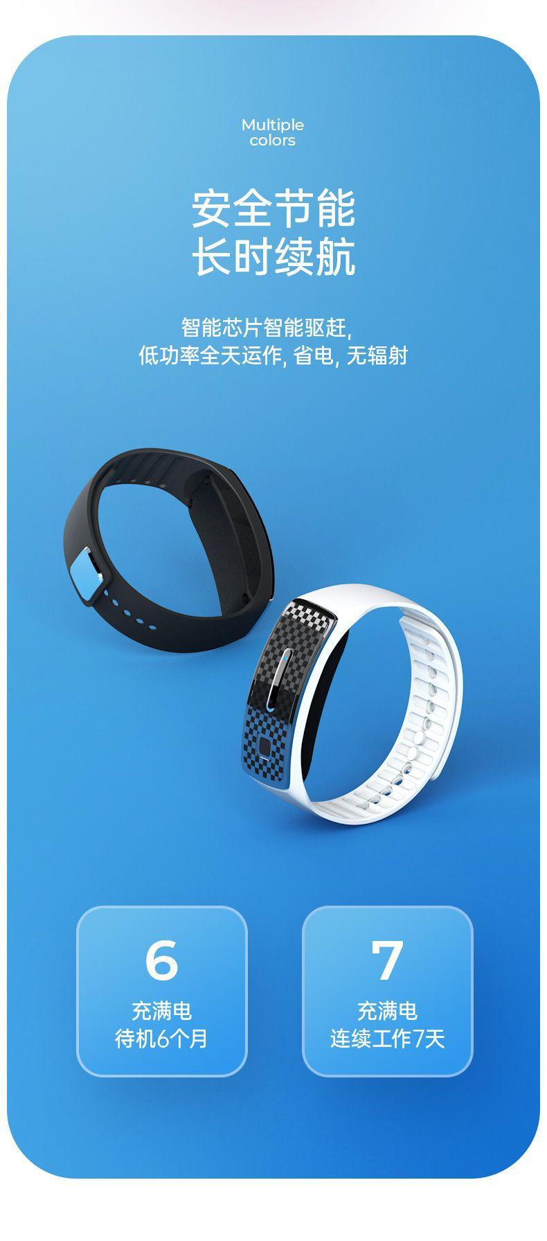 | Princípio repelente de mosquitos | A pulseira consegue o efeito repelente de mosquitos imitando os sons que as fêmeas dos mosquitos odeiam, como os sons dos mosquitos machos e das libélulas. Na natureza, as fêmeas dos mosquitos sugam sangue e estão no período de gravidez e postura. Nessa faixa de preço, os mosquitos fêmeas evitarão os mosquitos machos para evitar a gravidez secundária. Portanto, simular o som dos mosquitos machos pode atingir o efeito repelente de mosquitos. |