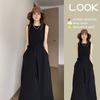 Estilo francês Hepburn estilo vestido colete feminino verão novo solto emagrecimento fio macio sem mangas A- linha vestido preto pequeno