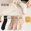 Meias Femininas de Cano Médio, Outono e Inverno, Cor Café, Estilo Japonês, Rosto Sorridente Fofo, Estilo College, Meias Longas, Estilo Ins, Meias Esportivas, Modernas