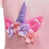 A parte superior do corpo é combinada com flores suaves e unicórnios amigos da pele, que são mais infantis.