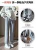 Calças Casuais Cinzas para Mulheres Primavera & Outono 2025 Novo Look Solto Emagrecedor Calças de Moletom de Perna Larga Calças de Moletom Harem Pequenas Tricotadas