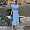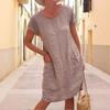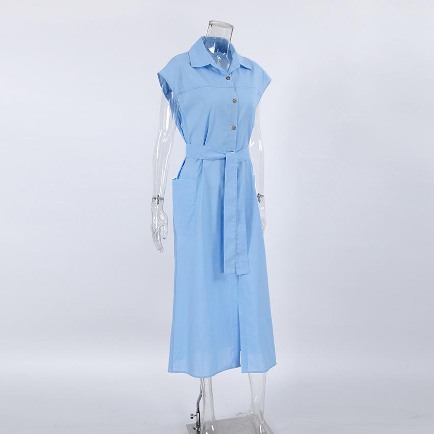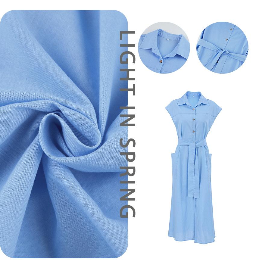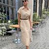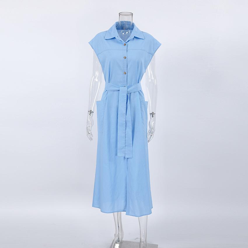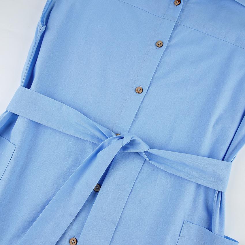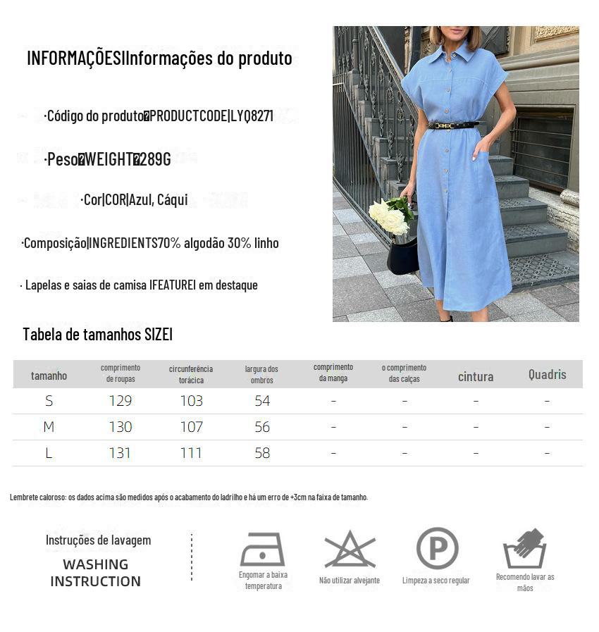 Commuter Holiday Short-sleeved Cotton and Linen Dress Europeu e Americano Cross-border 2023 Verão Novo Elegante Vestido de Camisa Longa