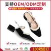 Sandálias personalizadas OEM estilo europeu e americano Baotou Back vazias, bico fino, salto grosso, borda perolada, fabricante OEM