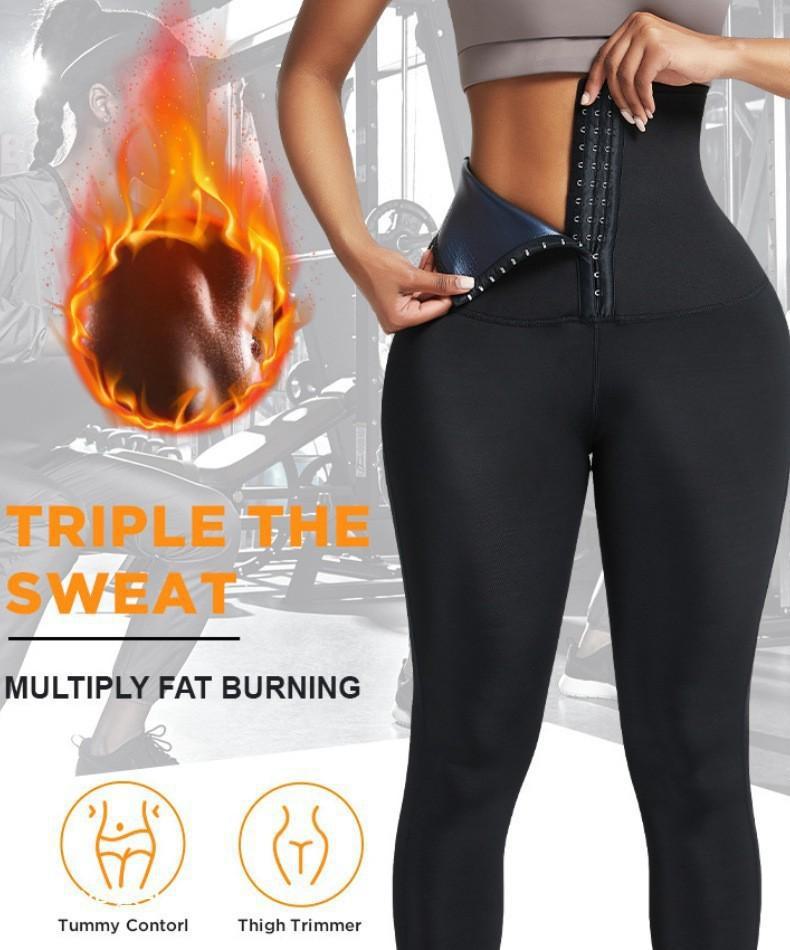 Amazon fitness plus size revestimento estourado calça de suor feminino emagrecedor terno movimento da barriga cinco pontos calças de ioga verão