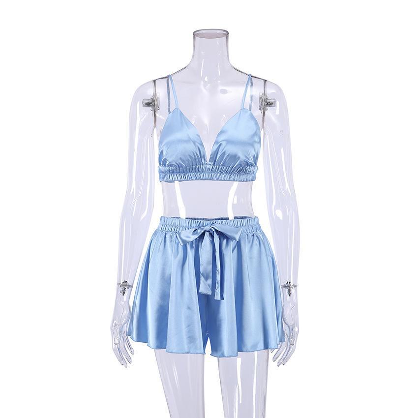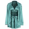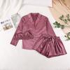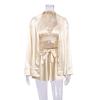 2023 outono e inverno europeu e americano gelo seda cetim terno sexy festa estilo terno shorts cardigan moda três peças cross-border