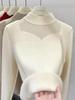 Suéter forrado de lã feminino outono e inverno engrossado uma peça veludo base camisa novo estilo malha meia gola alta quente solto top