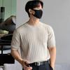 Compre Verão sólido cor redonda pescoço manga curta suéter masculino slim fit tendência elástica all-match design sentido vertical listra meia manga t-shirt. no atacado no Joom.pro