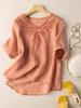 [Algodão puro] Camiseta Feminina Fina Fina com decote em V bordada Verão Feminino Novo Algodão Respirável e Linho Top Mulheres