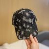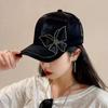 Boné de Beisebol Feminino Verão Recorte Strass Versátil Boné com Aba Estilo Coreano Moderno Casual Chapéu de Sol Malha Respirável Chapéu de Sol