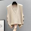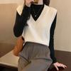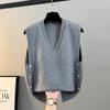 Colete Feminino Primavera e Outono 2025 Novo Colete Tricotado Decote V com Suéter Solto para Usar por Cima Top Fino de Outono e Inverno