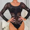 Roupa íntima sexy feminina sexy transparente vazada justa justa quente perfurante macacão de malha de uma peça fabricantes manga comprida gipsófila