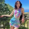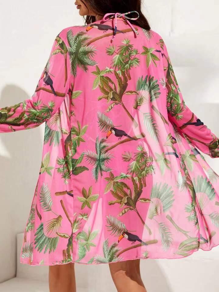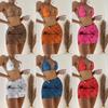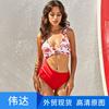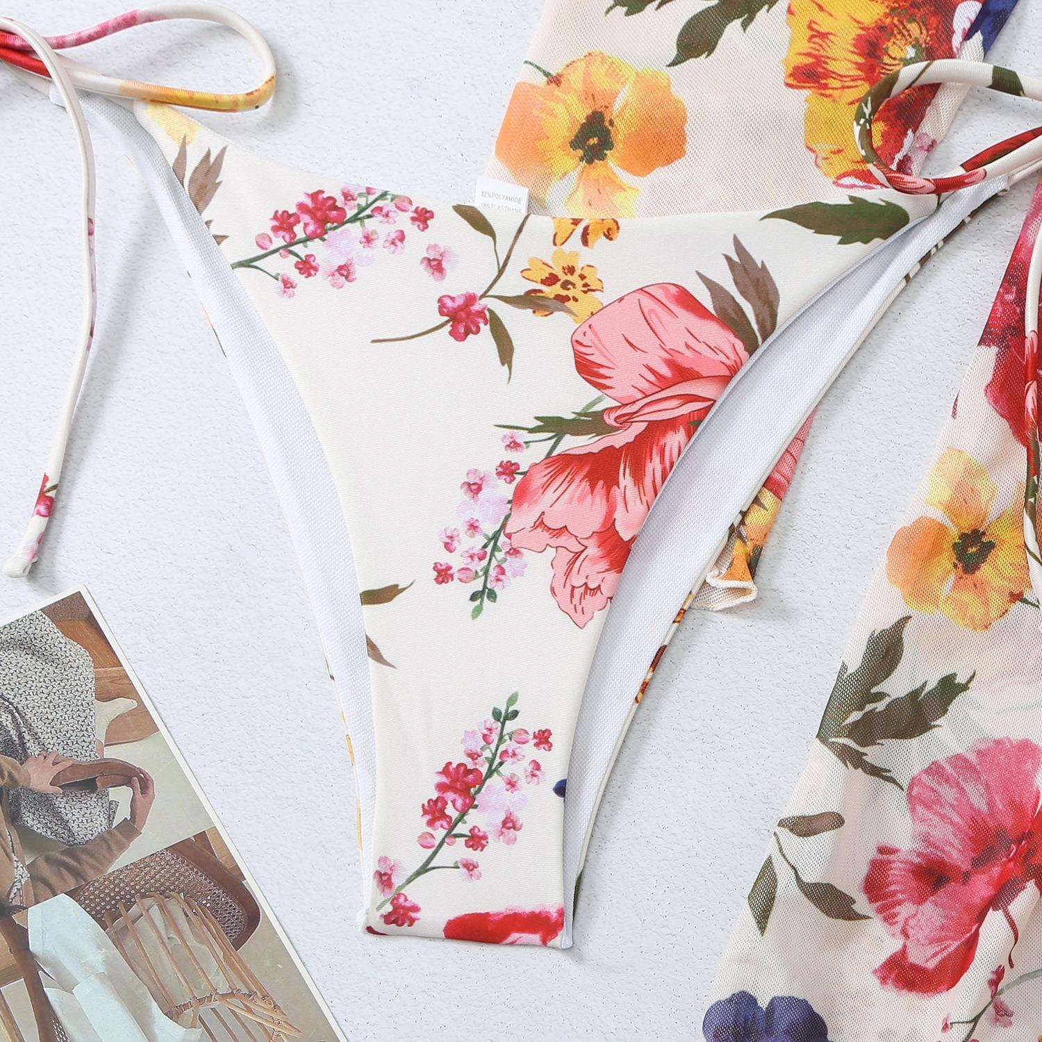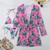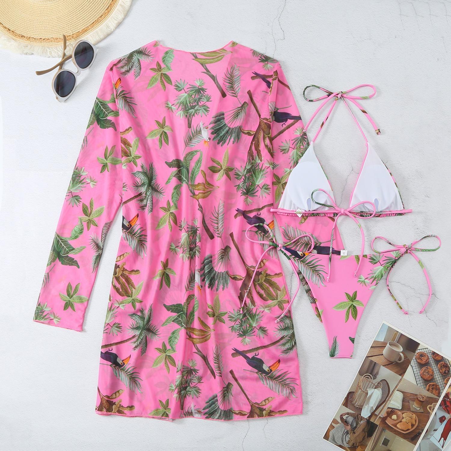 [5 Cores] 2025 Novo Europeu e Americano Exportação Transfronteiriça Roupa de Banho Biquíni de Três Peças com Saída de Praia de Malha Estampada