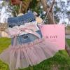 Estilo coreano primavera e verão laço renda adorável véu vestido tração princesa estilo gato roupas pet cão denim saia