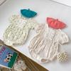 Ins verão nova chegada bebê menina estilizada floral de manga curta saco gordo roupas rendas quadrado colarinho triângulo chapéus roupas de escalada