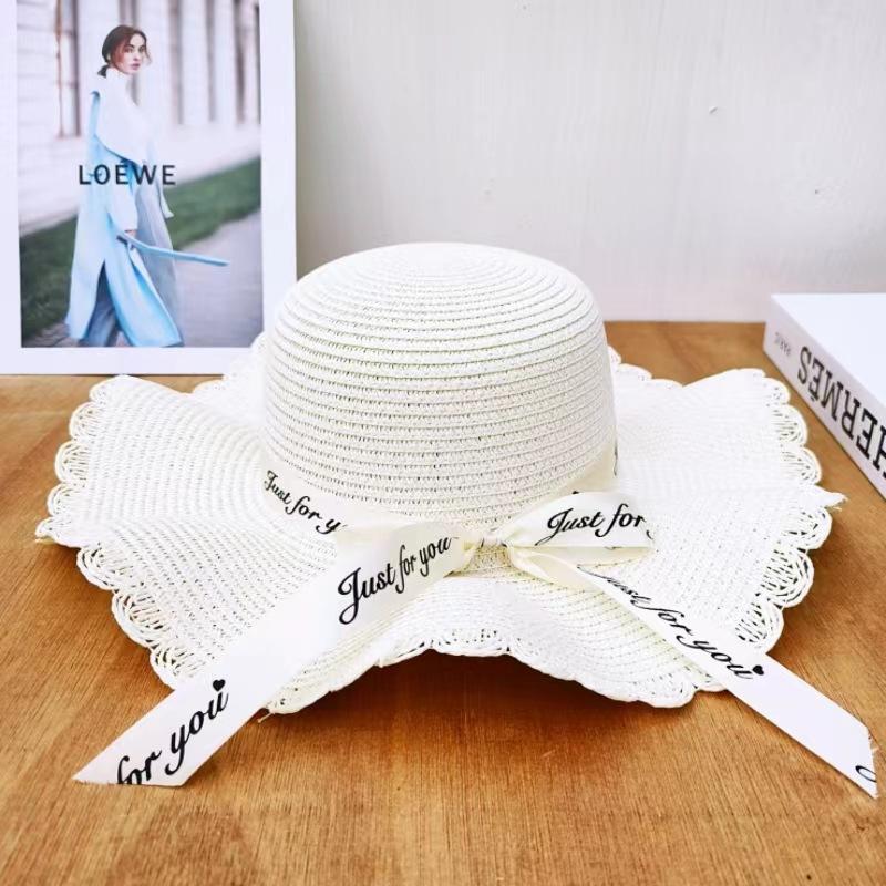 Chapéu de palha estilo coreano com laço inglês, proteção solar, chapéu de sol feminino, versátil, chapéu de sol para férias ao ar livre, chapéu de praia