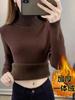 Suéter feminino de gola alta com forro de lã, outono e inverno, grosso, peça única, veludo, base, camisa, suéter interno slim fit, lapela, top quente