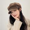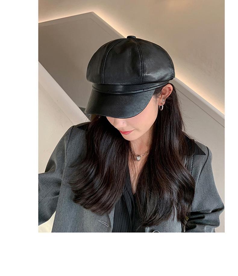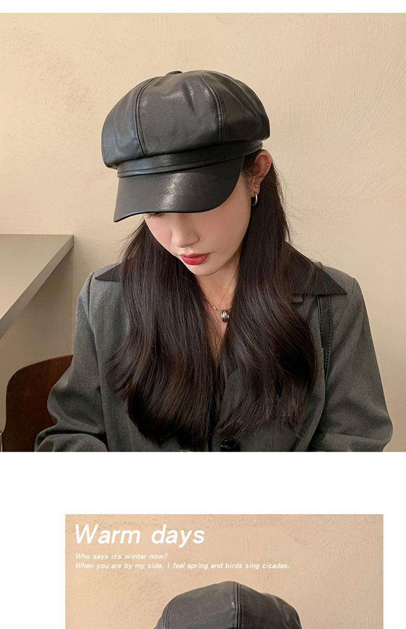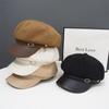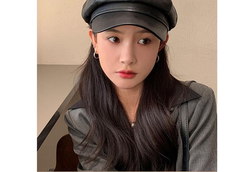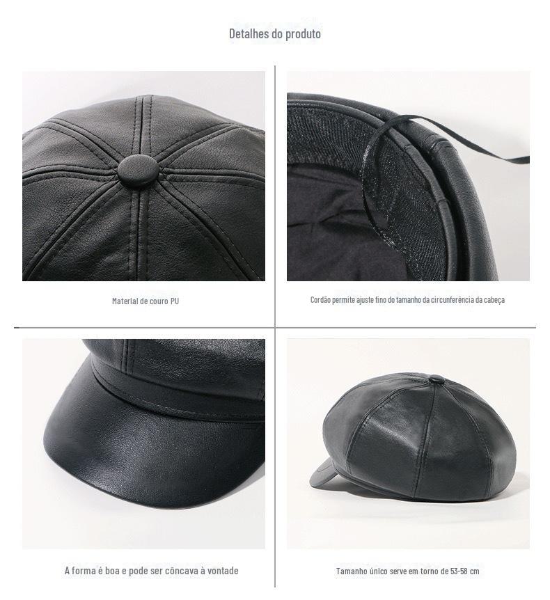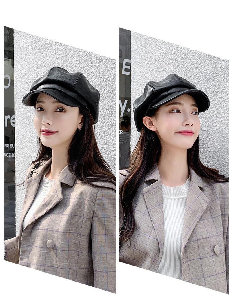 Chapéu Feminino Estilo Coreano Chapéu Octogonal Mostrando o Rosto Pequeno Couro PU Boné com Aba Primavera Britânico Moderno Chapéu de Pintor Boina