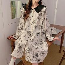 Camisola de enfermagem primavera e outono novo zíper invisível boca de enfermagem estilo princesa tecido bolha de malha fevereiro março vestido de confinamento
