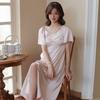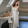 Puro desejo estilo camisola de seda gelo feminino 2024 verão fino estilo francês high-end pijamas estilingue branco com almofada no peito atacado