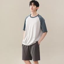 Verão novo pijama masculino modal cor sólida simples shorts de manga curta pulôver em torno do pescoço roupas para casa pode ser usado fora