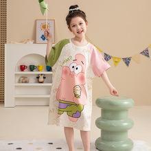 Novos pijamas de verão para mulheres, pulôver de imitação de algodão com gola redonda e camisola de manga curta, roupas de casa soltas e confortáveis, doces e fofas