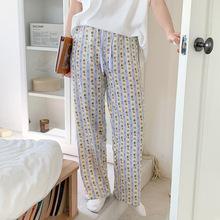 Bolha rugas pijamas casuais femininos primavera e verão fino rendas calças pijamas soltos comércio exterior impressão dos desenhos animados calças únicas