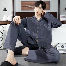 Imitação de algodão pijama masculino outono e inverno novo cardigan de manga comprida terno juventude simples casual roupas de casa pode ser desgastado