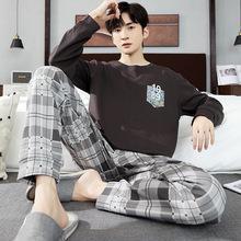 Puro algodão casal pijamas outono e inverno novo algodão pulôver manga longa lazer confortável solto roupas de casa masculina terno