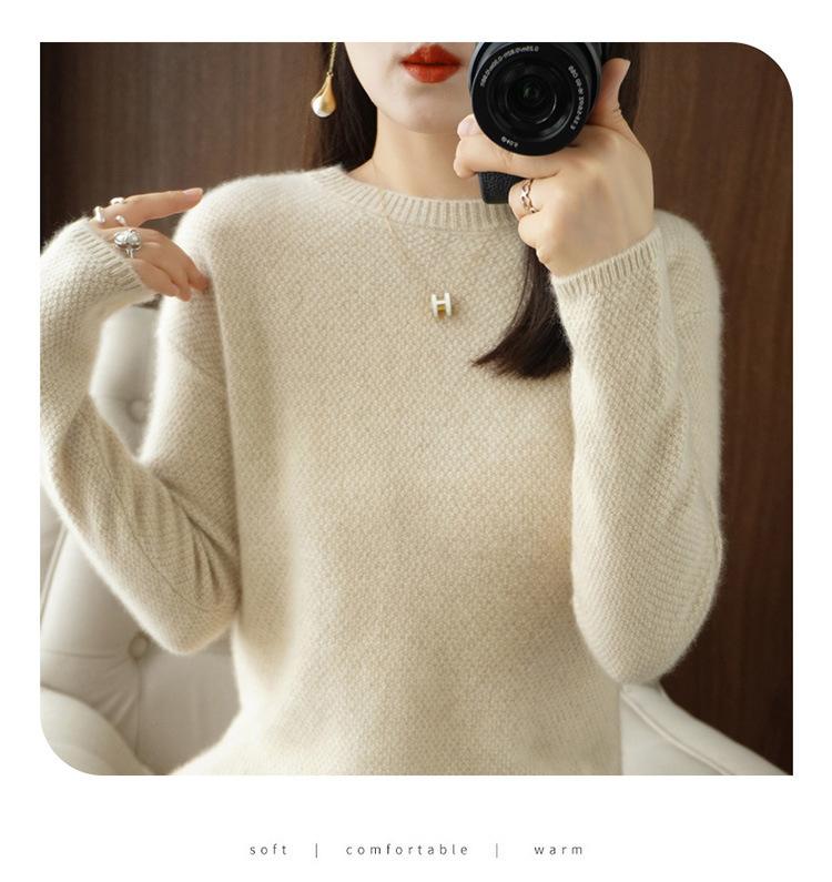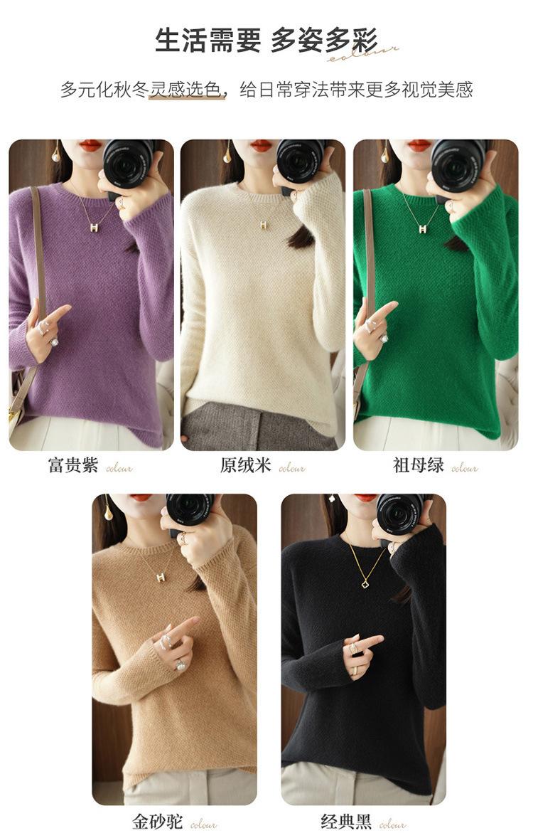 2023 outono e inverno novo pulôver de malha camisa de fundo feminina gola redonda manga comprida moda suéter interno feminino grosso atacado internacional