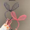 Estilo coreano moderna das orelhas de coelho da menina malha faixa de cabelo bonito da menina bow headwear diy handmade headband