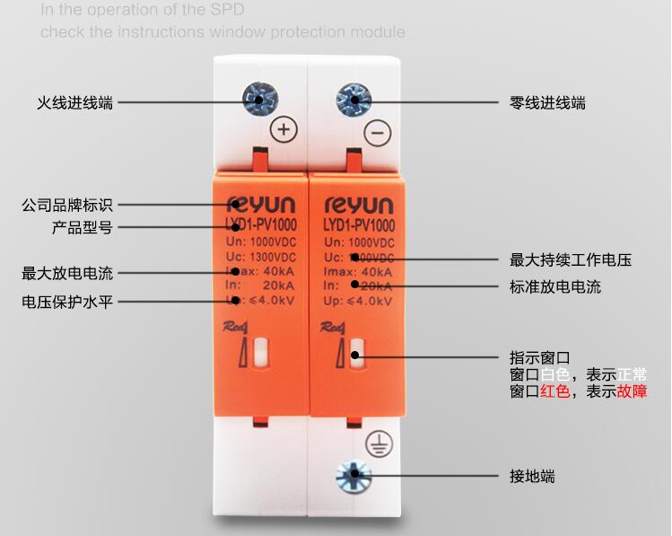 ![]() O SPD possui um seccionador integrado. Quando o SPD falha devido a superaquecimento ou quebra, o seccionador pode desconectá-lo automaticamente da rede elétrica e emitir um sinal de indicação. A janela visual do SPD fica branca quando está funcionando normalmente e vermelha quando falha e desconecta.