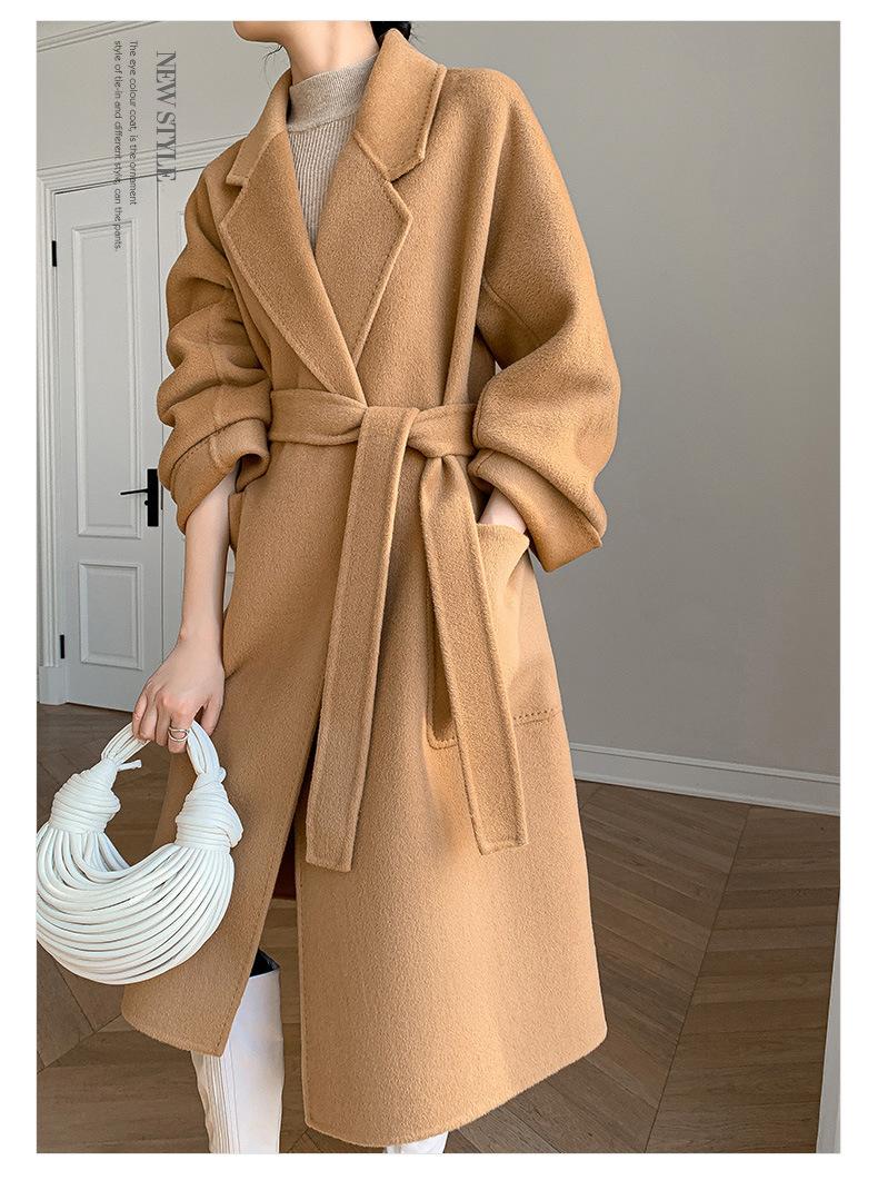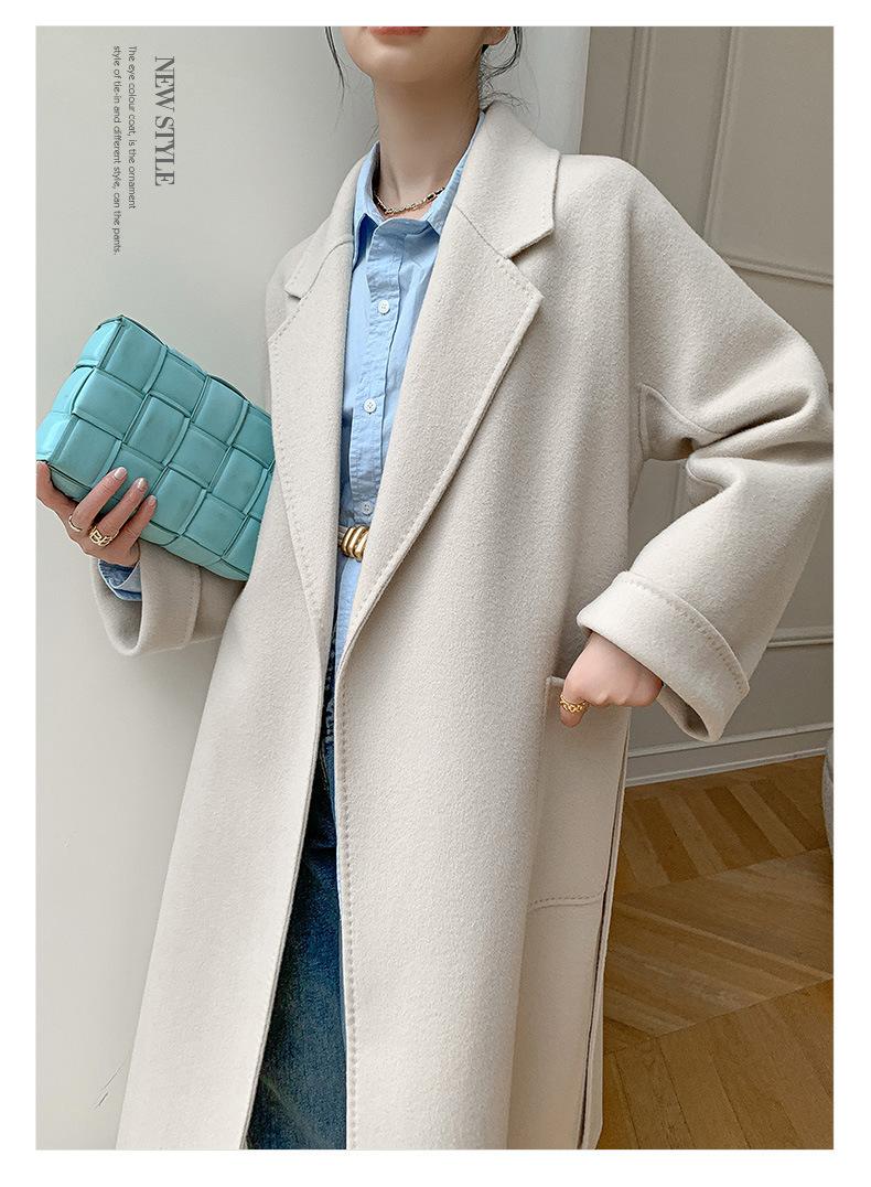 2023 Novo Outono e Inverno Casaco de Caxemira Dupla Face de Alta Qualidade Feminino Comprimento Médio Estilo Coreano Solto Quente Lã