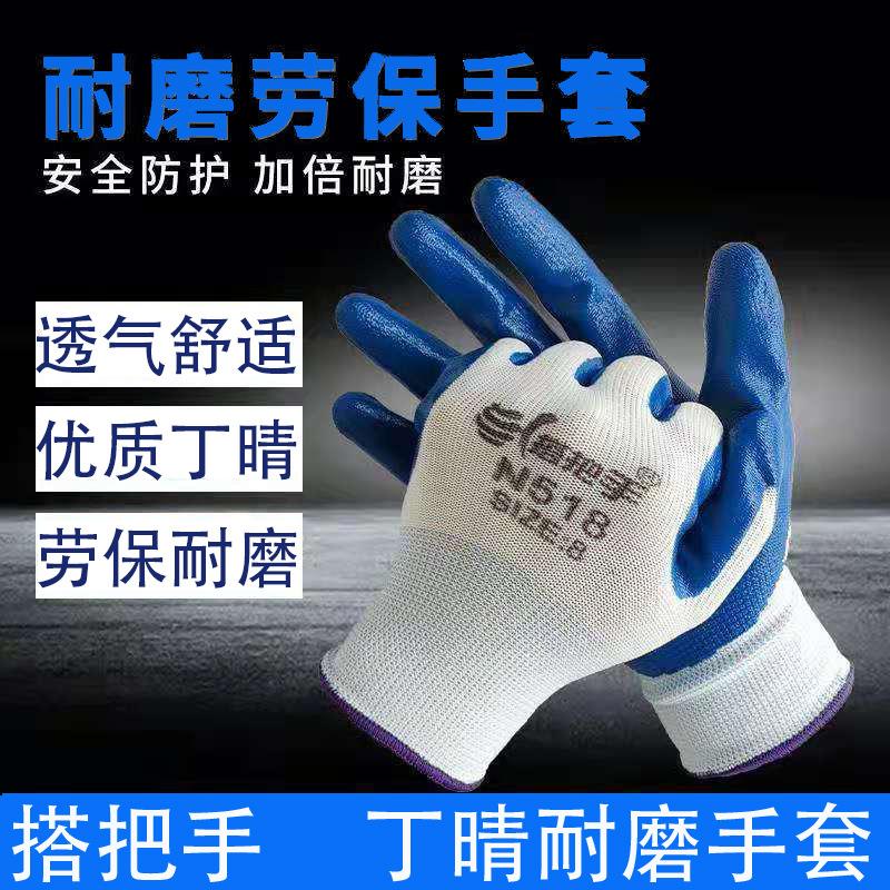N518 luvas de proteção do trabalho resistente ao desgaste trabalho de borracha de borracha mãos de trabalho plástico antiderrapante luvas mergulhadas para homens e mulheres¥1,8