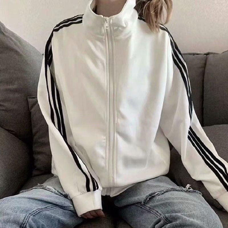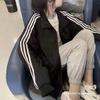Casaco feminino de três barras, primavera e outono de 2025, jaqueta fina coreana, preto, para estudantes, terno de beisebol feminino solto, estilo bf, moderno