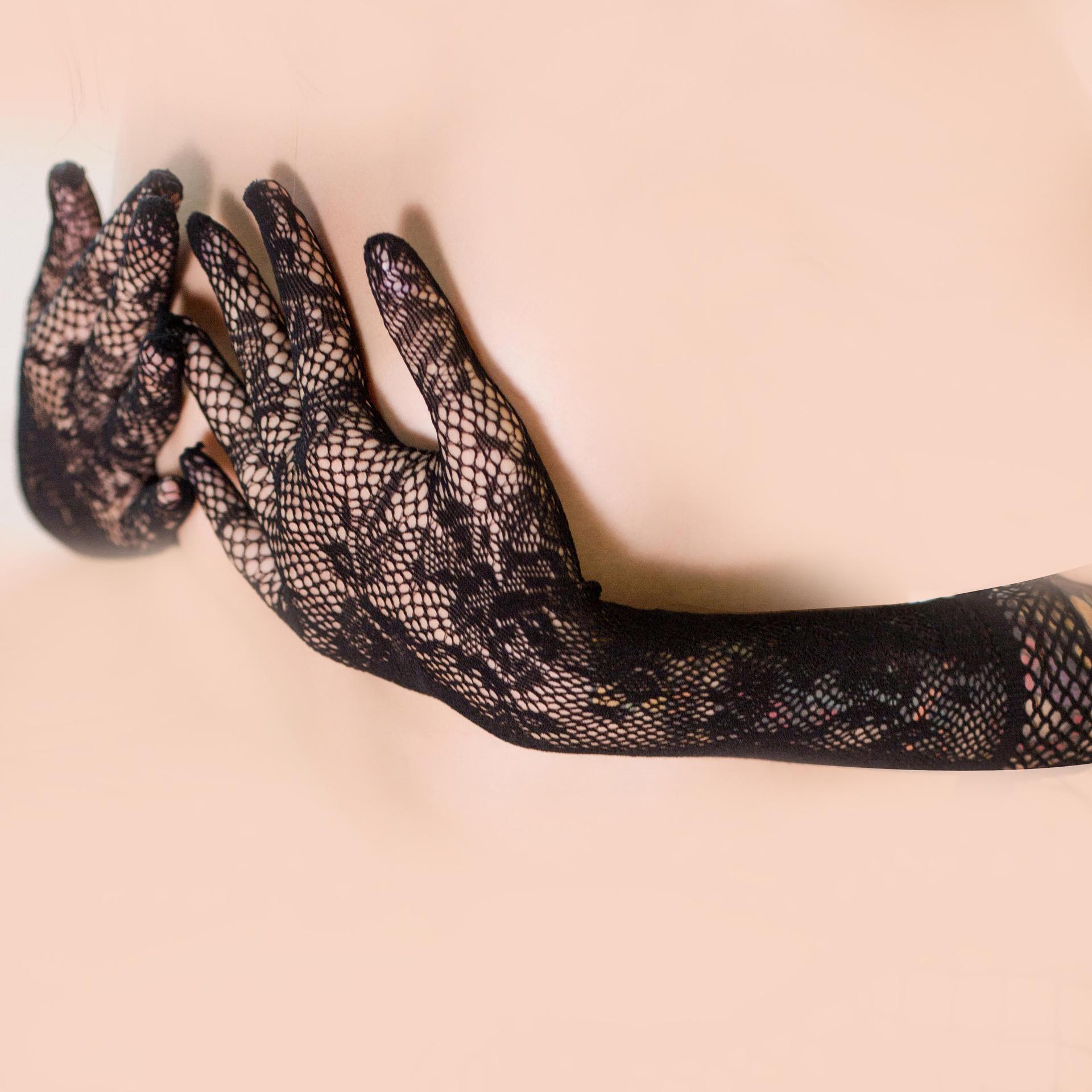 Acessórios de Lingerie Sexy Luvas de Renda Sexy Temptation Perspectiva Alta Elasticidade Preto e Branco Luvas Longas de Casamento