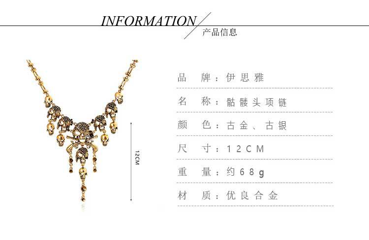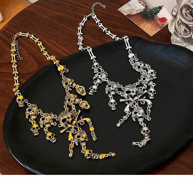 Cross-border Halloween exagerado crânio colar personalidade europeia e americana festival retro fantasma borla pingente atacado