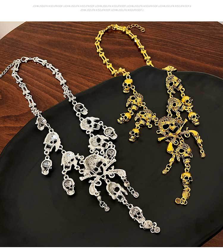Compre Cross-border Halloween exagerado crânio colar personalidade europeia e americana festival retro fantasma borla pingente atacado no atacado no Joom.pro