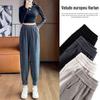 Calças grossas forradas de lã de outono e inverno calças femininas 2023 novas calças de harém amarradas no tornozelo calças largas de cintura alta esportivas casuais