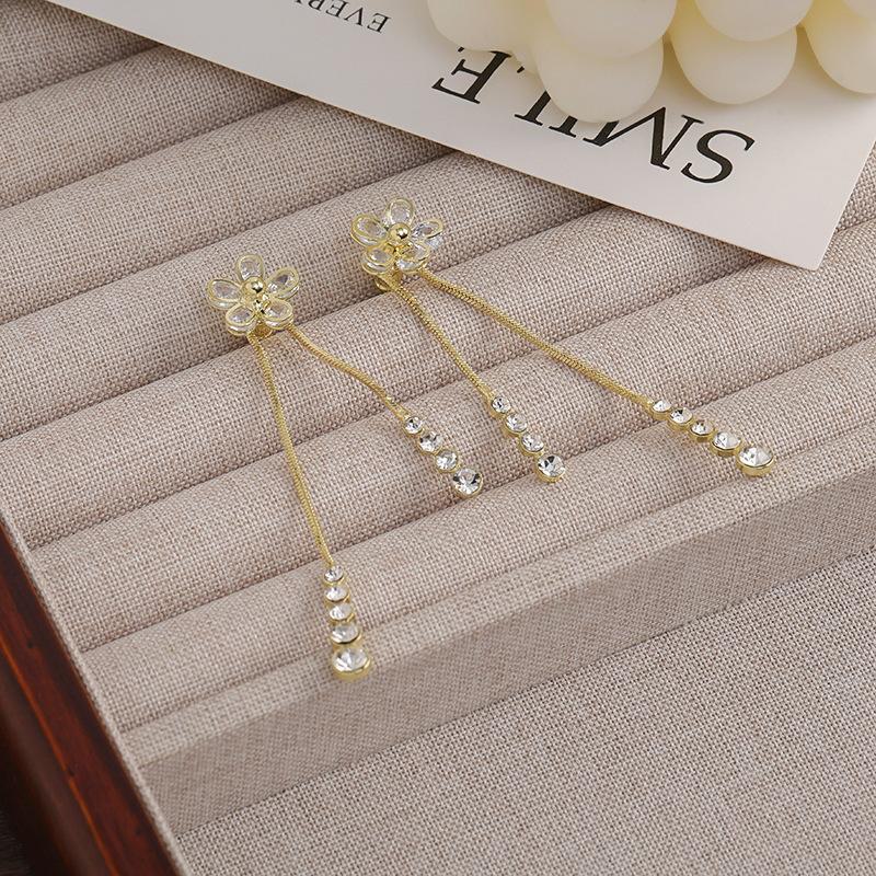 Coreia do Sul Dongdaemun Two-Wear Diamond Flower Long Tassel Prata Pin Brincos Brincos Femininos High-End Light Luxury Trendy Brincos