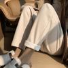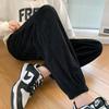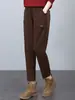 Calças esportivas para mulheres Primavera Outono Inverno 2024 Nova calça de moletom emagrecedora solta reta forrada de lã corduroy calça casual amarrada no tornozelo