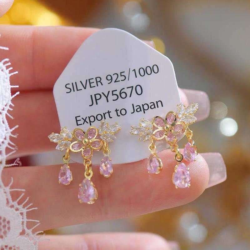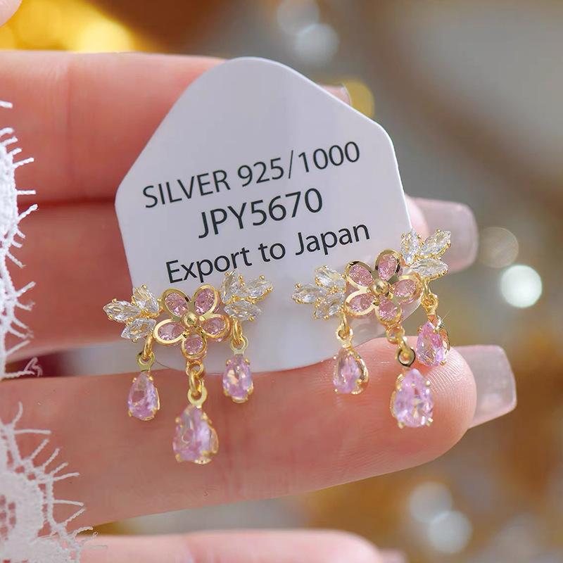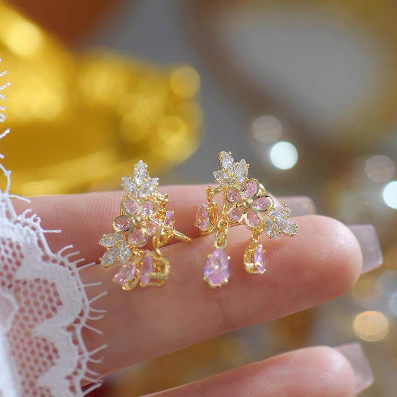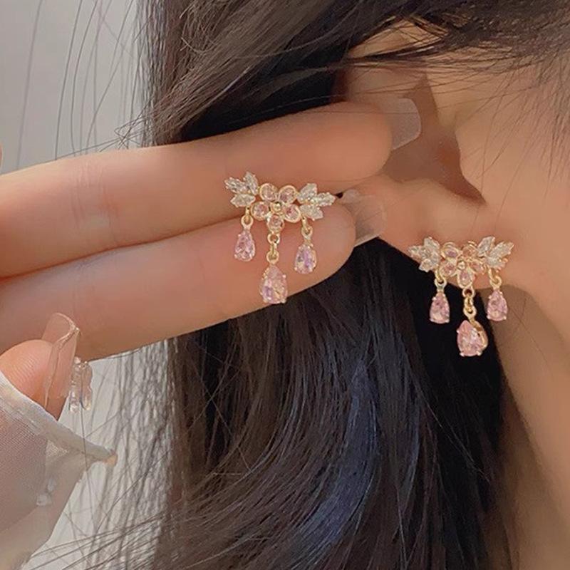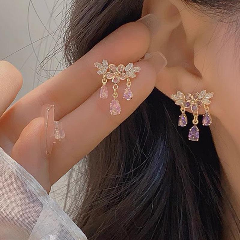 Brincos de borla de gota de água de cristal de cor requintada de alta qualidade brincos de flor de luxo francês 2024 novos brincos