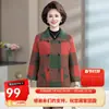 Roupas femininas de meia-idade e idosas novo cardigã de malha solto primavera e outono top estilo ocidental casaco xadrez de lã para as mães