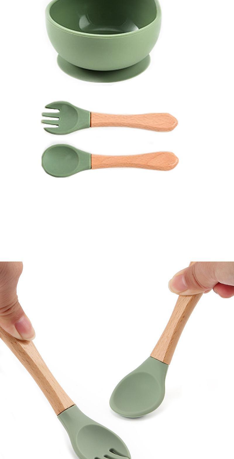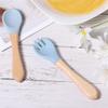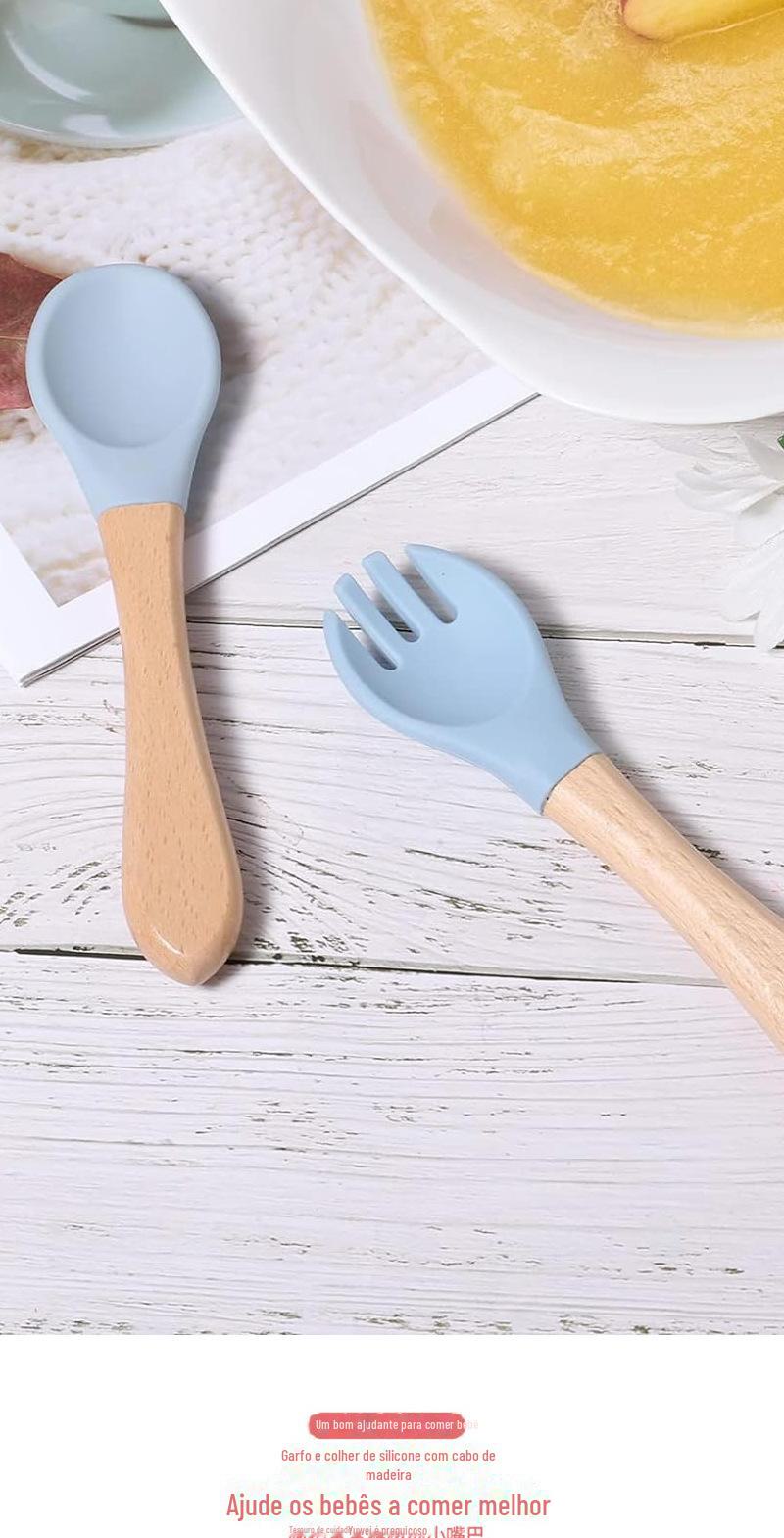 Colher e Garfo de Silicone Infantil Transfronteiriço Colher de Treino para Bebê Comer Talheres Macios Garfo Grau Alimentar Alimentação Suplemento Alimentar Infantil