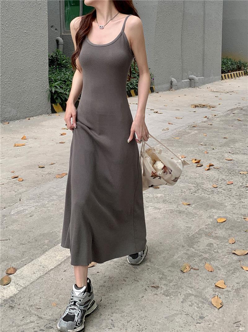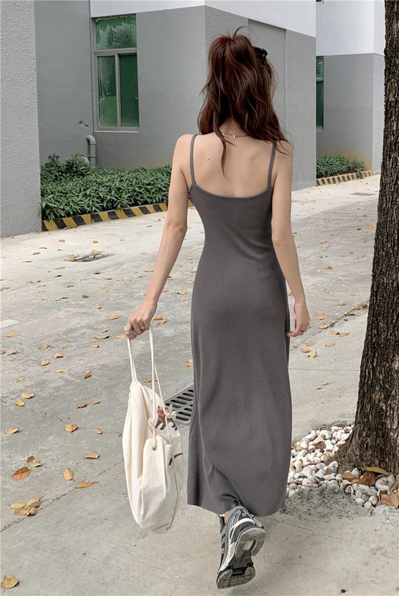Doce Garota Quente Sem Mangas Cintura Costas Nuas Vestido de Suspensório Feminino Verão Desejo Puro Temperamento Cauda de Peixe Saia Quadril 2025 Novo Estilo
