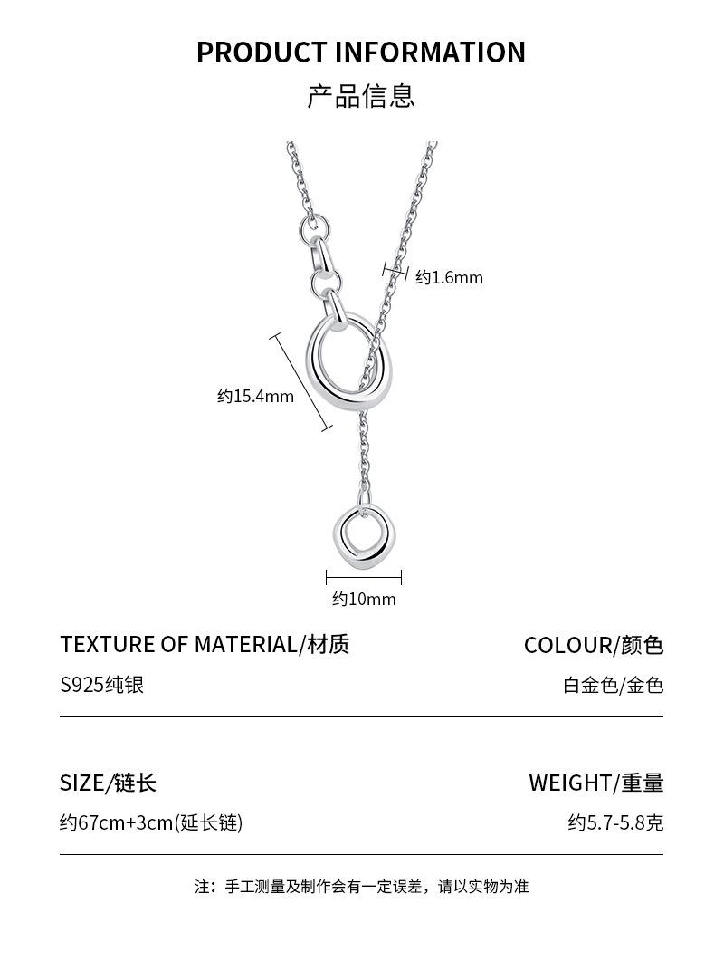64 prata esterlina S925 colar leve luxo nicho design temperamento anel fivela suéter corrente simples esticar clavícula corrente