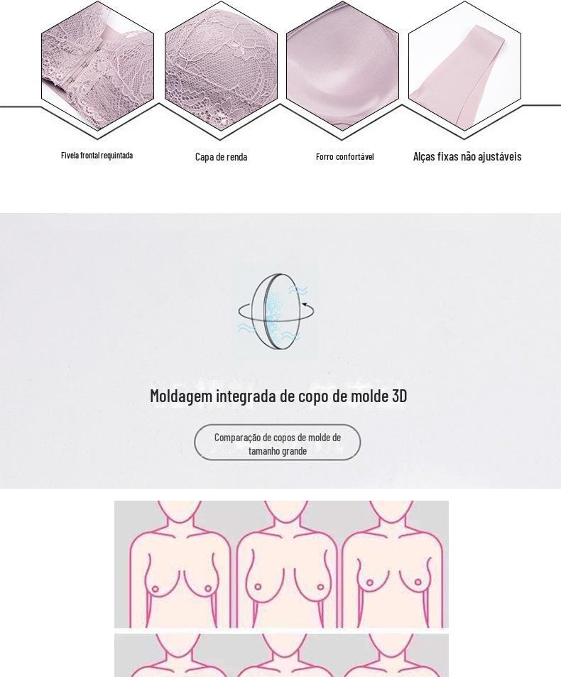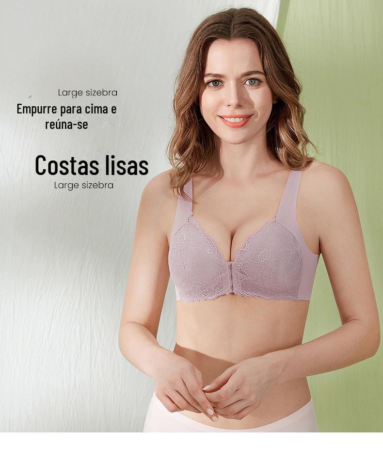 Sutiã fino grande com fivela frontal renda sexy sem costura sem anel de aço colete lindo ajuste nas costas roupa íntima feminina