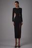 Vestido Feminino Outono e Inverno 2025 Manga Longa Longo Decote Redondo Vazado Costas Nuas Botão Elástico Faixa Transfronteiriço Fornecimento Europeu e Americano