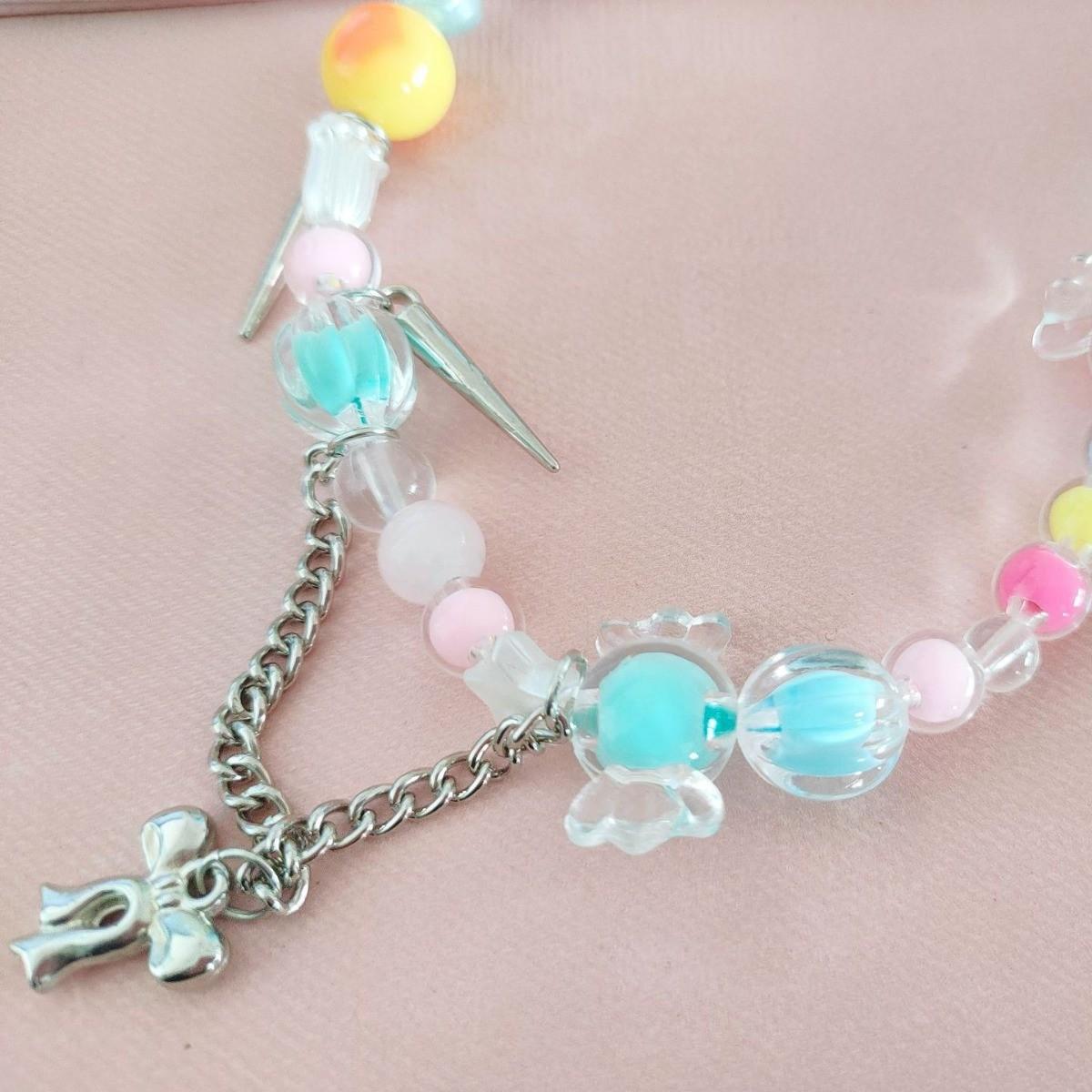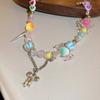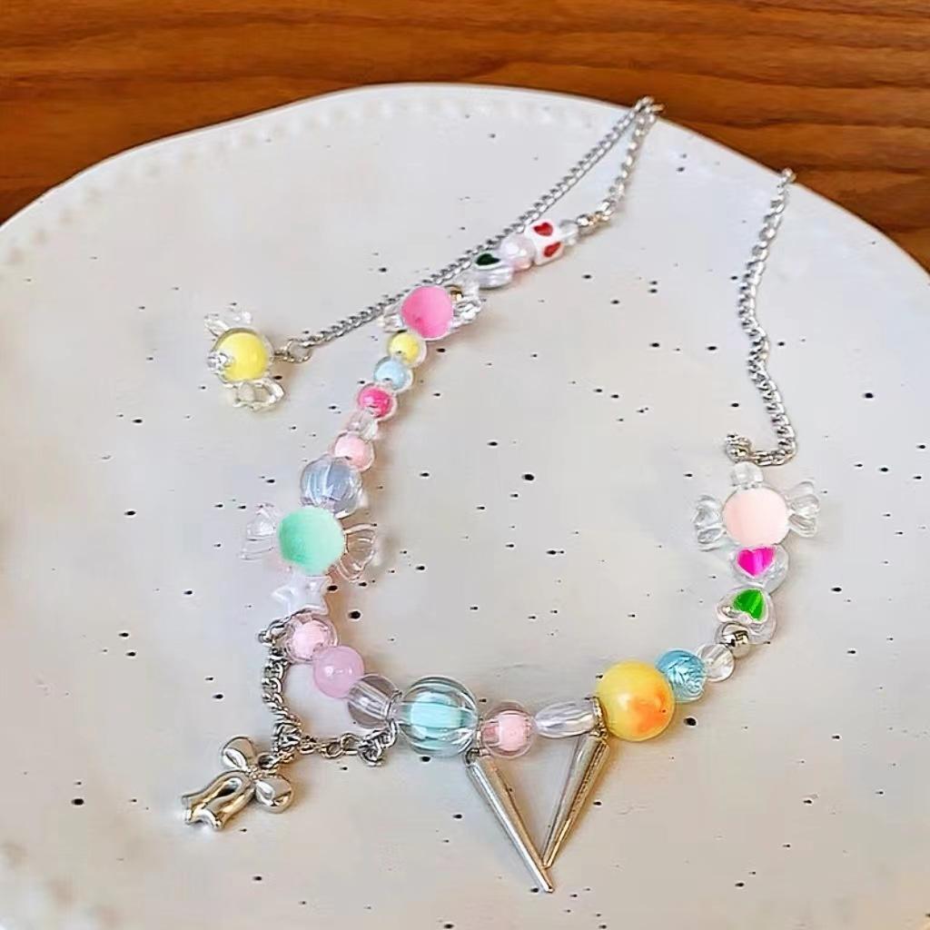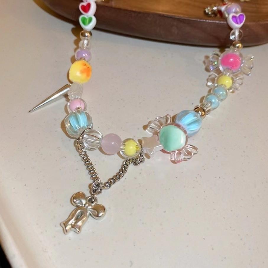 Cor dopamina série clavícula cadeia acrílico doces frisado doce moda laço pingente colar 126