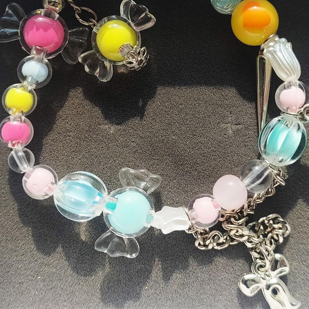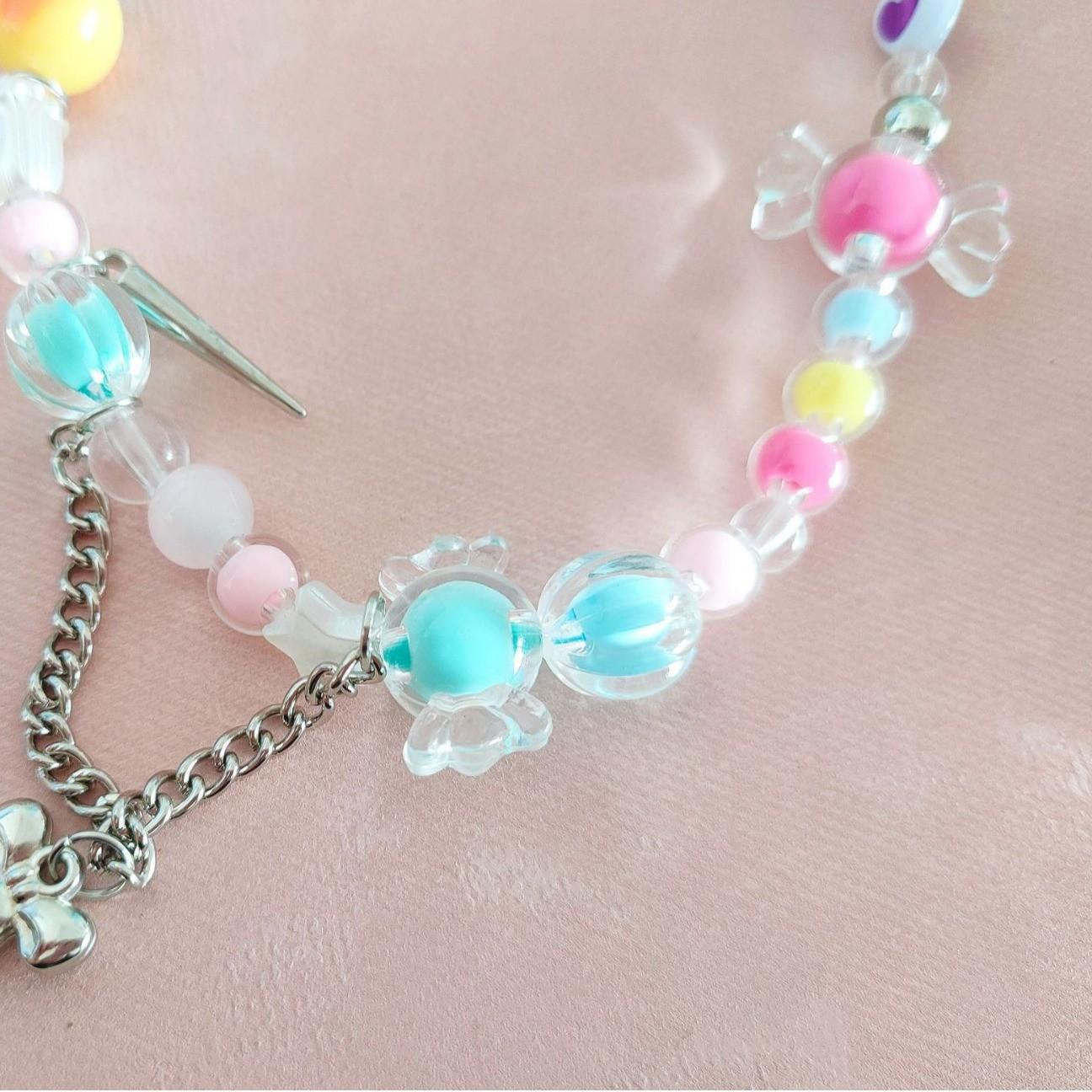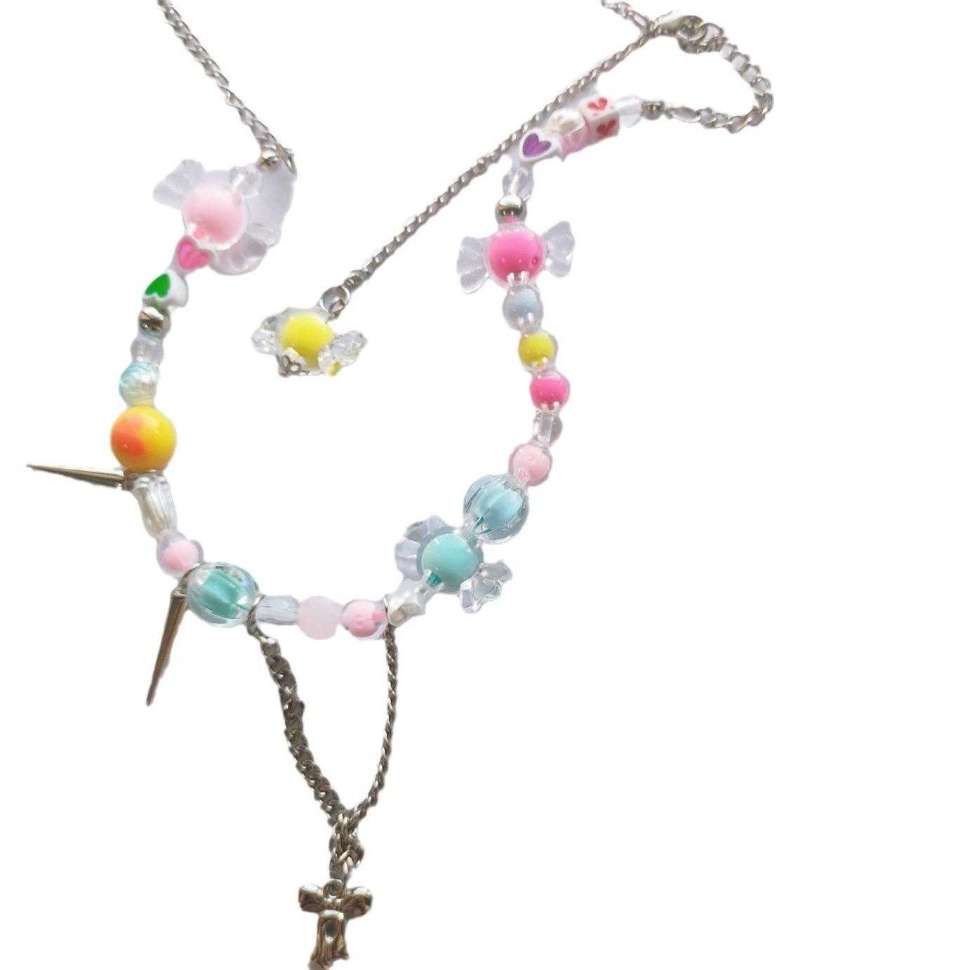 Cor dopamina série clavícula cadeia acrílico doces frisado doce moda laço pingente colar 126